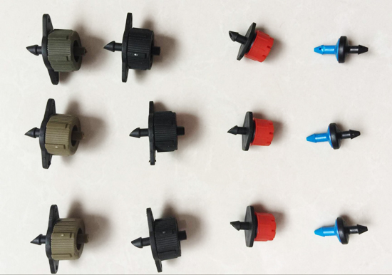 (3)按對水壓的反應(yīng)分為常規(guī)滴頭和壓力補償式滴頭。常規(guī)滴頭流量隨水壓的增加而增加;壓力補償式滴頭能隨壓力變化而改變過水斷面或流道長度,保持水量基本不變。